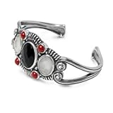 Carolyn Pollack , Beauty, style, and charm - everything's bigger in Texas! And this natural gemstone and sterling silver cuff bracelet has all three. The centerpiece is a gorgeous faceted onyx gemstone, surrounded by natural gems and detailed sterling silver craftsmanship. The cuff features faceted white topaz, round red coral, and oval crystal quartz over white mother of pearl. In Texas, style is a part of life - with this magnificent cuff bracelet on your arm, you can make it a part of yours, too. Proudly made in New Mexico, USA with fair labor. We do our part for the environment by crafting our jewelry from recycled genuine sterling silver. ...